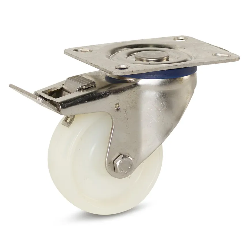 RVS geremd zwenkwiel 100 mm, 180 kg, nylon