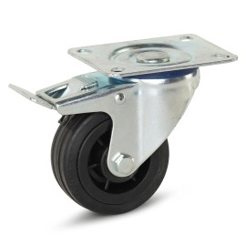 Rubber zwenkwielen met kunststof wielbody hebben standaard Rubber (85° Shore A) en zijn veruit de voordeligste oplossing en hebben goede roleigenschappen op een minder vlakke ondergrond met eventueel drempels. De wielen zijn normaal slijtvast, geschikt voor temperaturen van -20 tot +125°C.