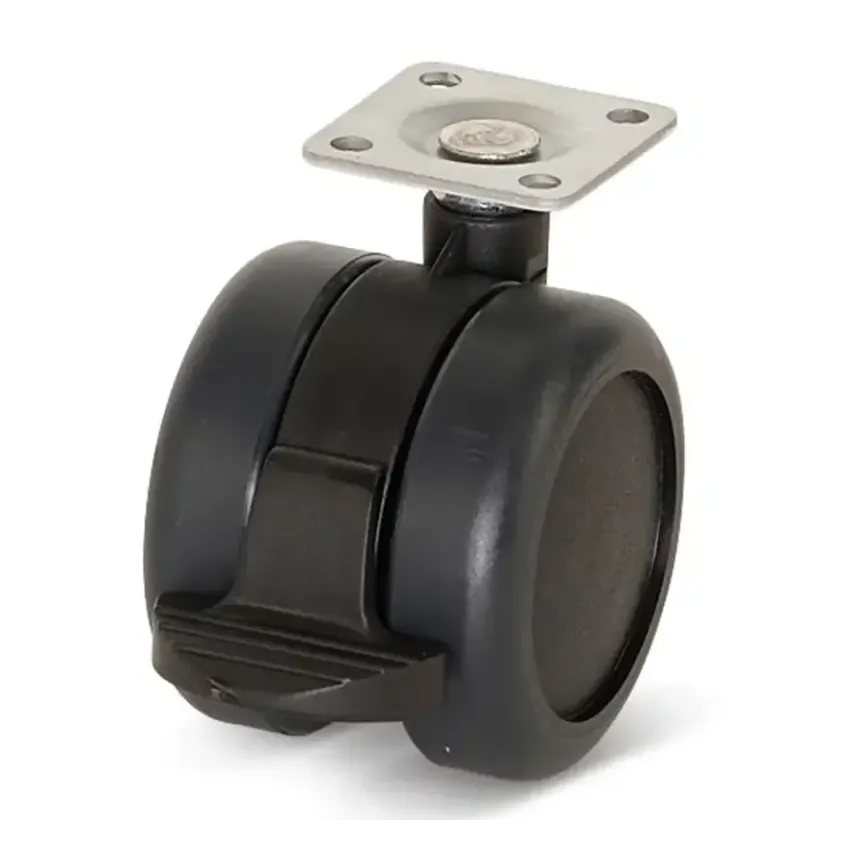 50 mm geremd meubel zwenkwiel met centraal gat - M6-50